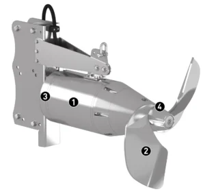 | 2 | Лопасти | Двухлопастной пропеллер изготовлен полностью из нержавеющей стали и установлен на валу. Гладкая поверхность всей мешалки позволяет жидкости поступать к пропеллеру без создания турбулентности. |